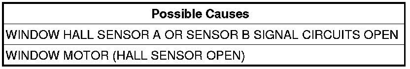 - Repair the Window Hall Sensor Signal circuit(s) for opens.