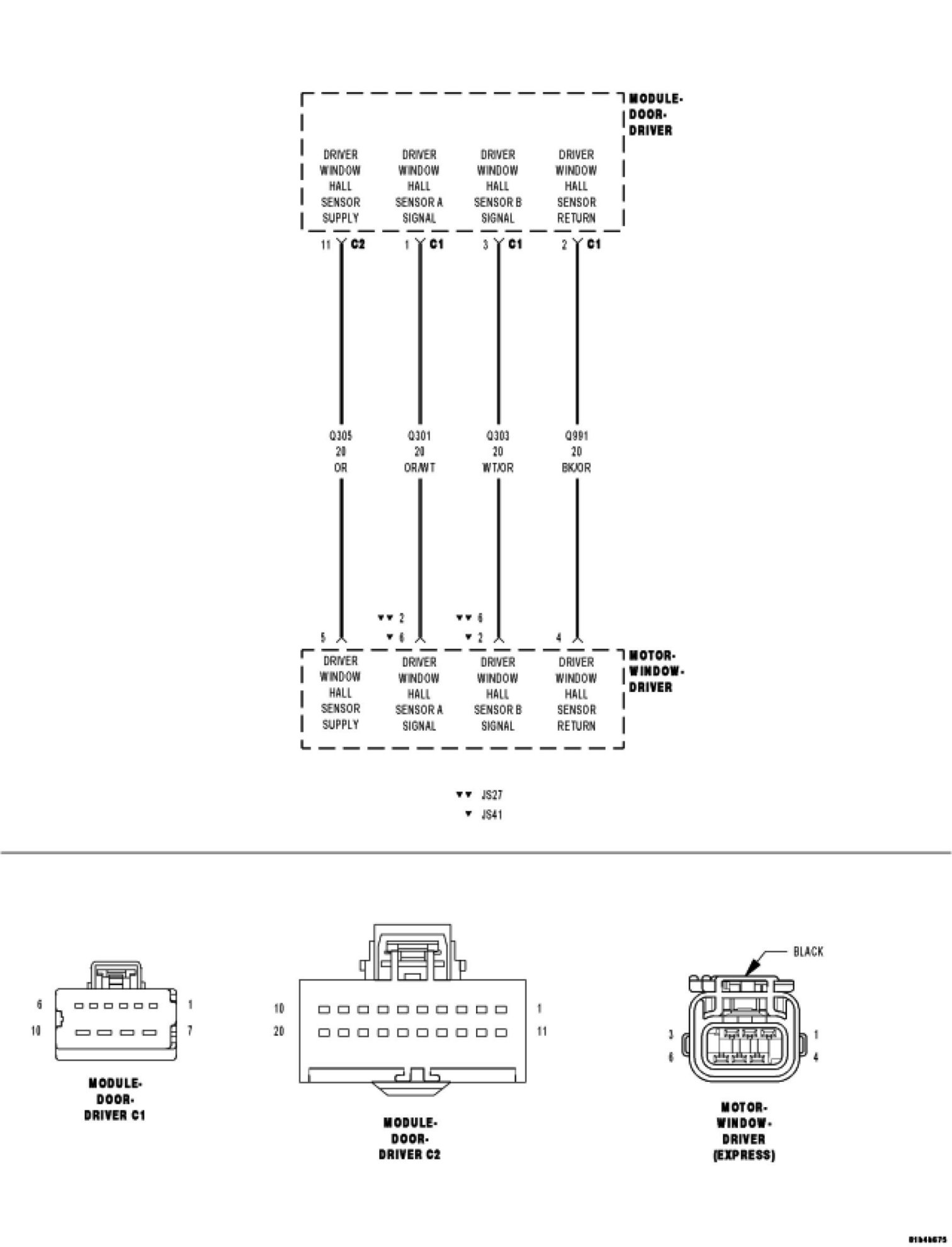 Measure the resistance of the Window Hall Sensor A Signal circuit between the Motor connector and the Module C2 connector.