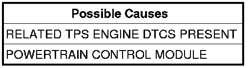 The powertrain controller receives the throttle position signal from the Throttle Position Sensor (TPS). The controller provides the TPS with a 5 volt pull up and a sensor ground. The signal is checked for being out of range as well as for intermittent operation (excessive signal changes). The engine controller transmits the throttle value onto the Bus. Most engine controllers will calculate the throttle value if the throttle signal is lost. If an error is detected by the transmission controller and the throttle value is available on the Bus, the Bus value will be used, normal operation will continue, and a TPS code will be set. If an error is detected and the throttle value is not available on the Bus, normal operation will be discontinued, a TPS DTC will be set, and the MIL will be turned on after 5 minutes of calculated operation.