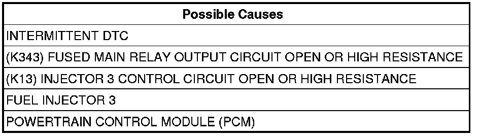 - Repair the (K13) Injector 3 Control circuit for an open circuit or high resistance.