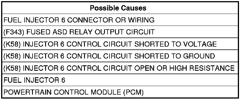 - Repair the (K58) Injector 6 Control circuit for an open circuit or high resistance.