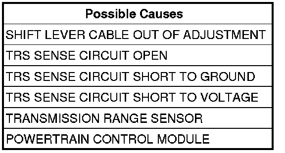 NOTE: If the Shift Lever Position test fails, make sure to note the identification of the TRS Sense circuit for future reference.