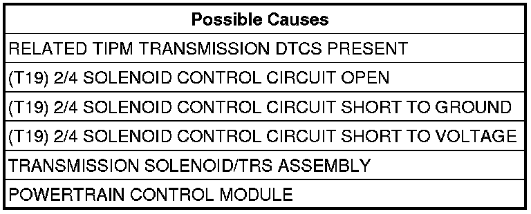 - Repair the (T19) 2/4 Solenoid Control circuit for a short to ground.