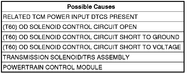 - Repair the (T60) OD Solenoid Control circuit for a short to voltage.