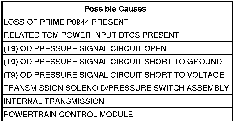 - Repair the (T9) OD Pressure Signal circuit for a short to voltage.