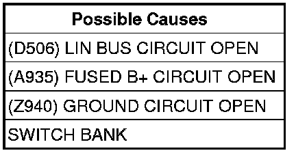 - Repair the (D506) LIN BUS circuit for an open.