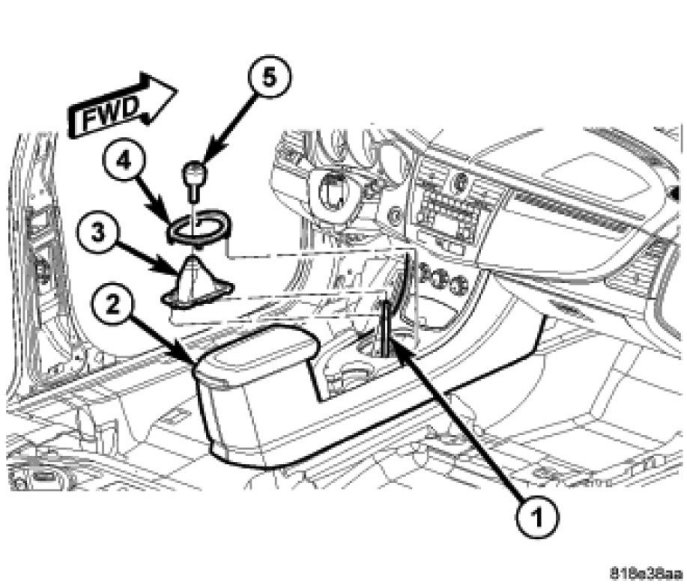 1. Locate bezel (4) over shifter lever (1) and into shifter pod.