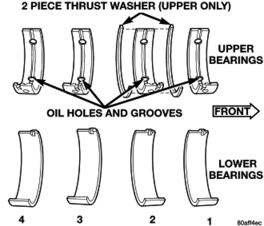 Bearing caps are not interchangeable and are marked to insure correct assembly. Upper and lower bearing halves are NOT interchangeable.