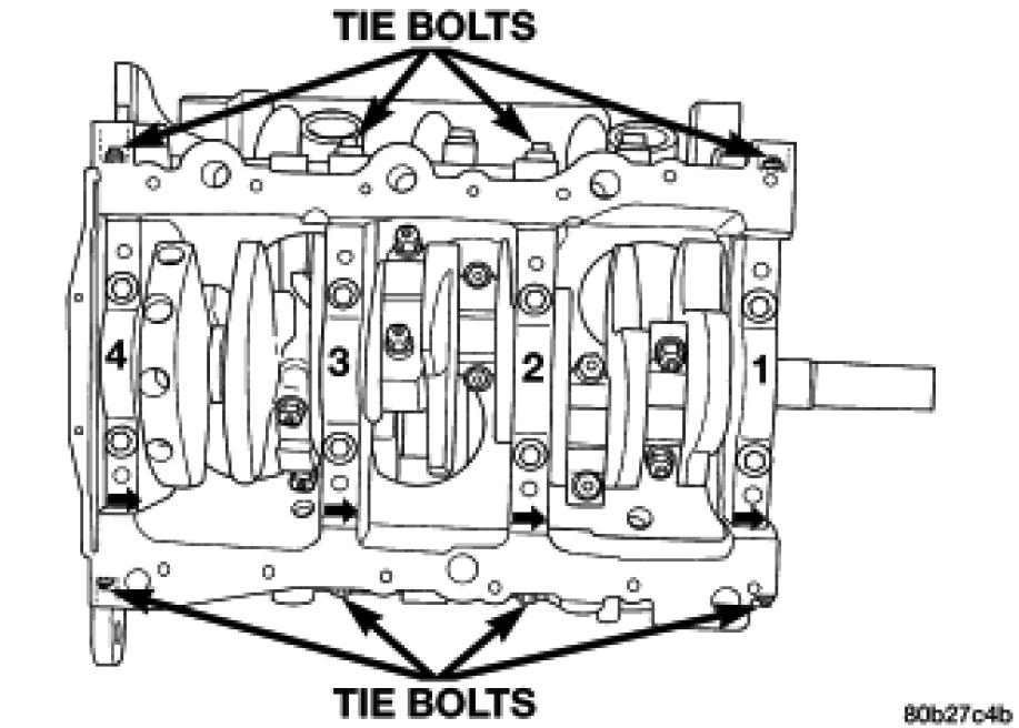 11. Remove main bearing caps (2). Main bearing caps are not interchangeable and are marked to insure correct assembly.
