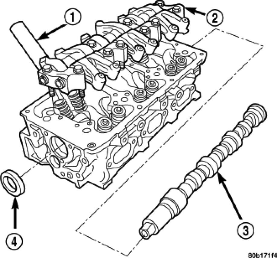 10. NOTE: When installing the camshaft (1) into the cylinder head (4), you must insert the seal protector (2) through the camshaft seal (3) until the camshaft seats, then remove Special Tool 6788 (2) from the camshaft.