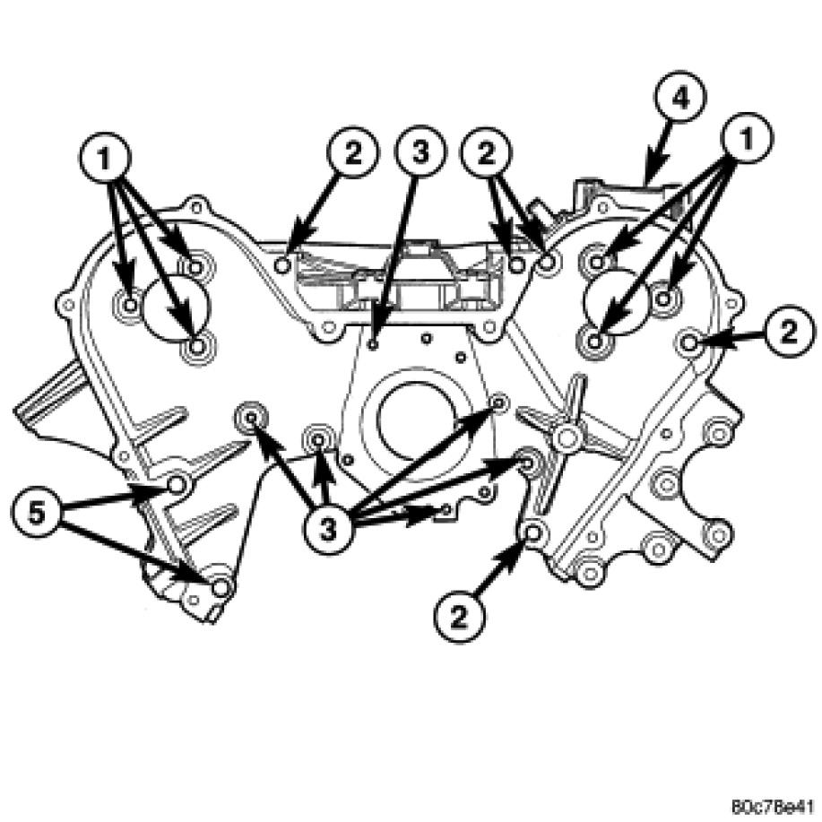 7. Install the inner timing cover to cylinder head bolts. Tighten bolts to 54 Nm (40 lbs.ft.).