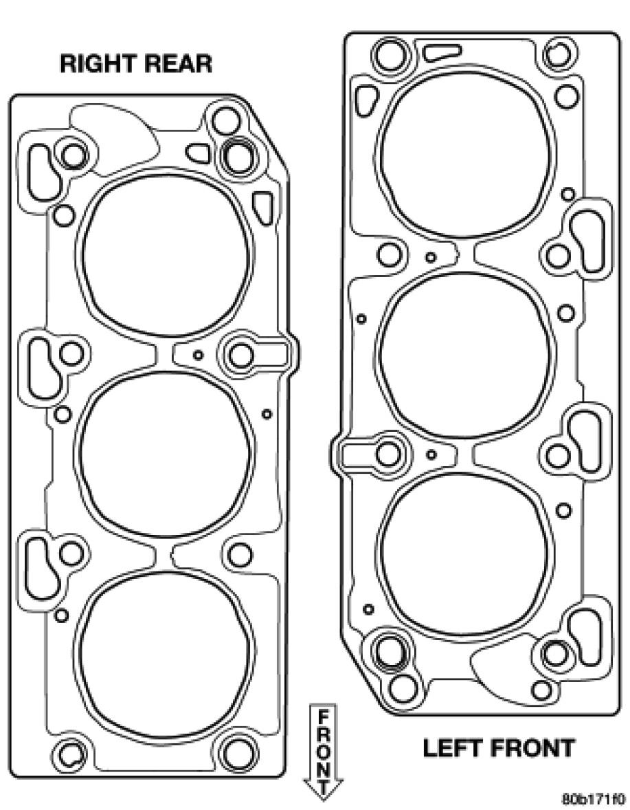 CAUTION: The cylinder head gaskets are not interchangeable between cylinder heads and are clearly marked right or left.