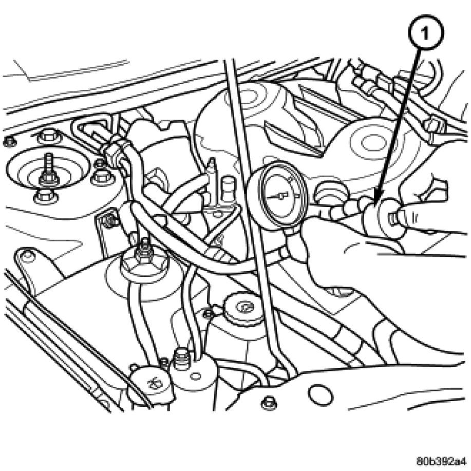 Install Cooling System Tester 7700 (1) or equivalent to pressure cap neck. Start the engine and observe the tester's pressure gauge. If gauge pulsates with every power stroke of a cylinder a combustion pressure leak is evident.