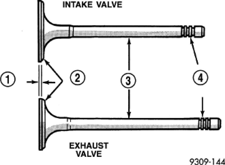 1. Inspect the remaining margin after the valves are refaced Engine Specifications.