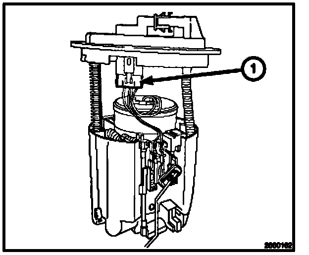 2. Disconnect the fuel level sending unit electrical connector (1).