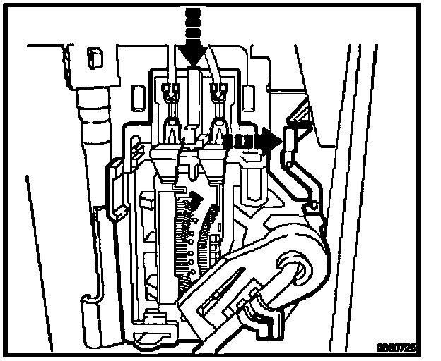 2. Gently push the fuel level sending unit down until the snap tab (2) engages.