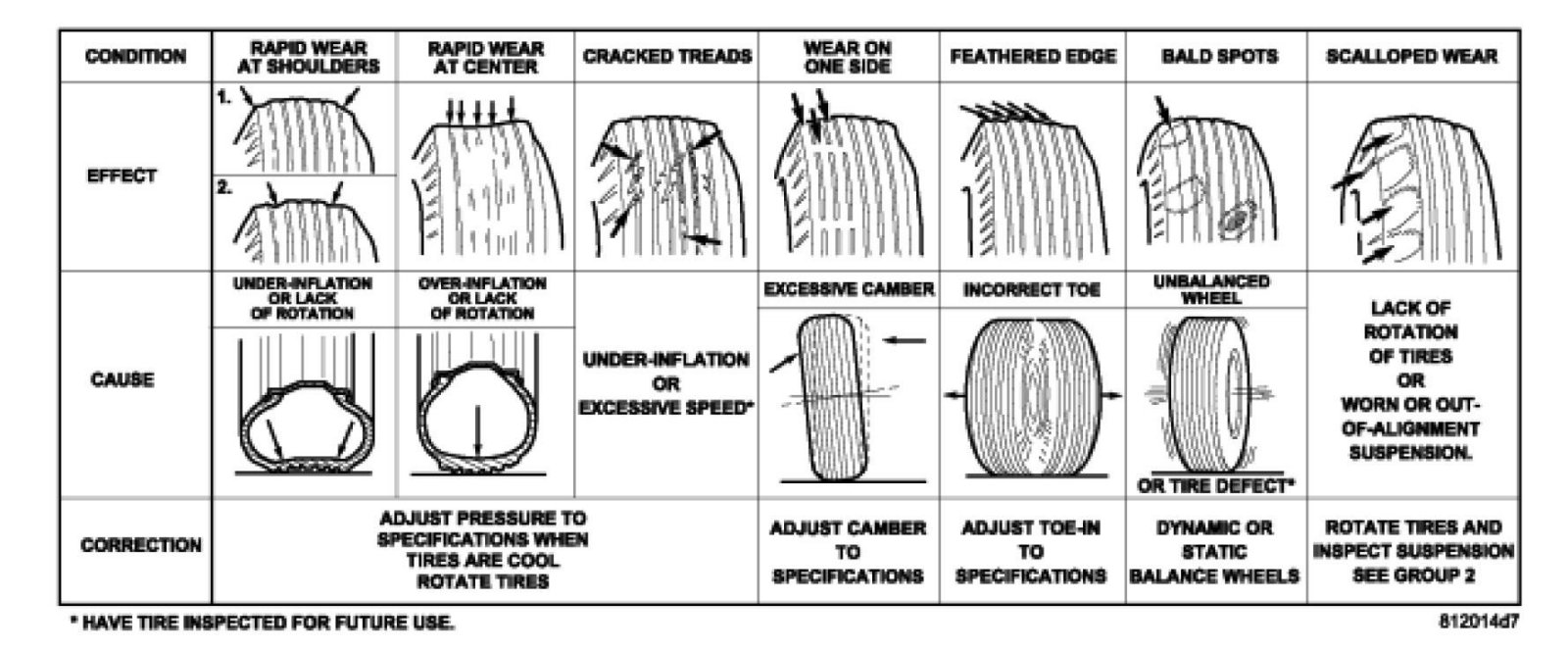 Excessive toe-in or toe-out causes wear on the tread edges and a feathered effect across the tread.