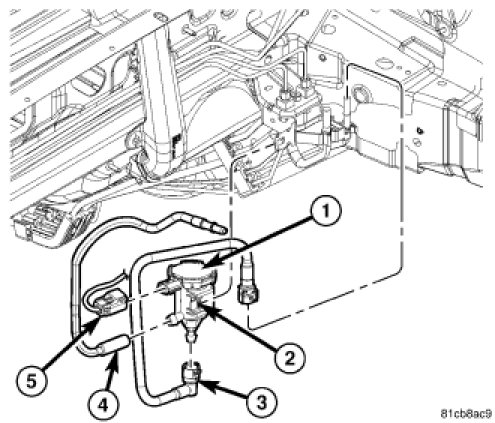 3. Install purge hose (4) to evaporator purge solenoid (1).