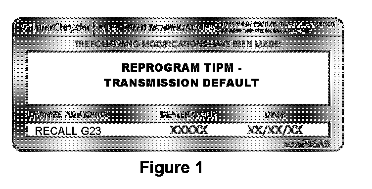 1. Type or print (with a ballpoint pen) the recall number, dealer code and date on the Authorized Modifications Label (Figure 1).