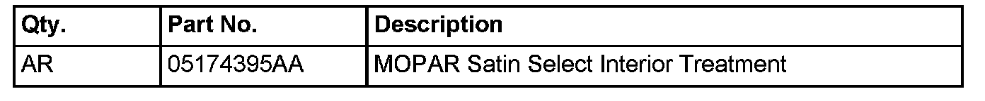 Instead, MOPAR Satin Select, p/n 05174395AA, which has been specifically developed to remove minor surface contamination and maintain the low gloss appearance should be used for interior trim treatment.