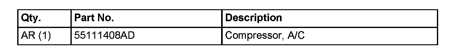 1. Using the procedures found in DealerCONNECT > TechCONNECT, replace the A/C compressor with pn 55111408AD