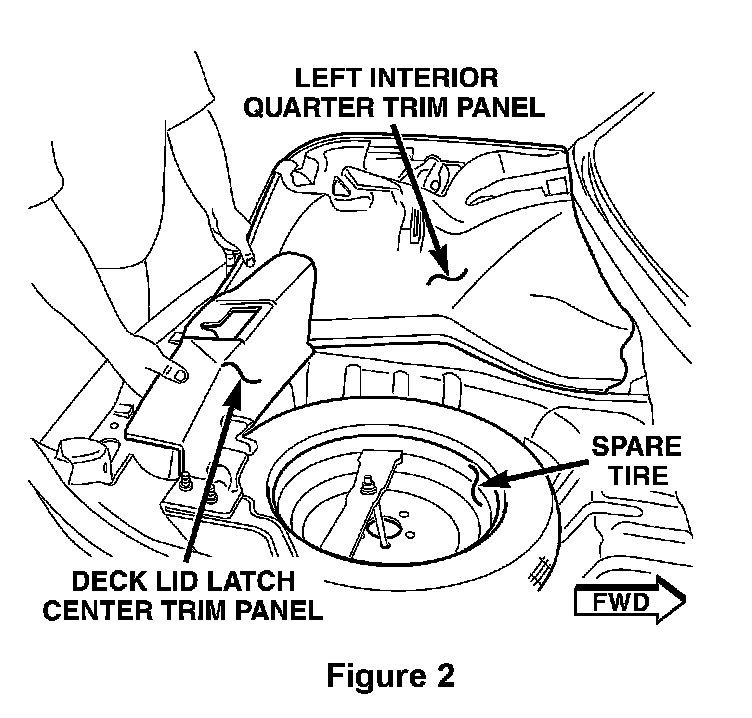 6. Remove the deck lid latch center trim panel (Figure 2).