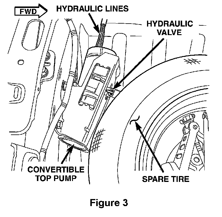 9. Turn the hydraulic valve located on the convertible top pump one turn counterclockwise (Figure 3).