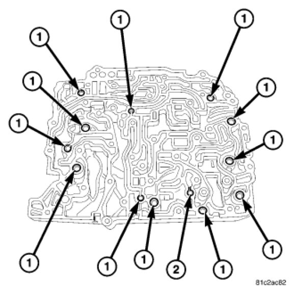 2. Install the check balls (1) and (2) if equipped.
