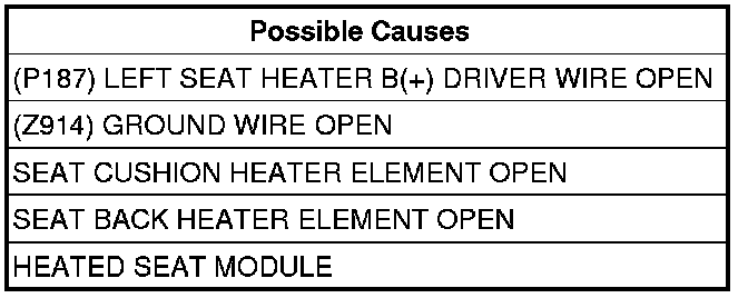 - Repair the (P187) Left Seat Heater B(+) Driver circuit for an open.