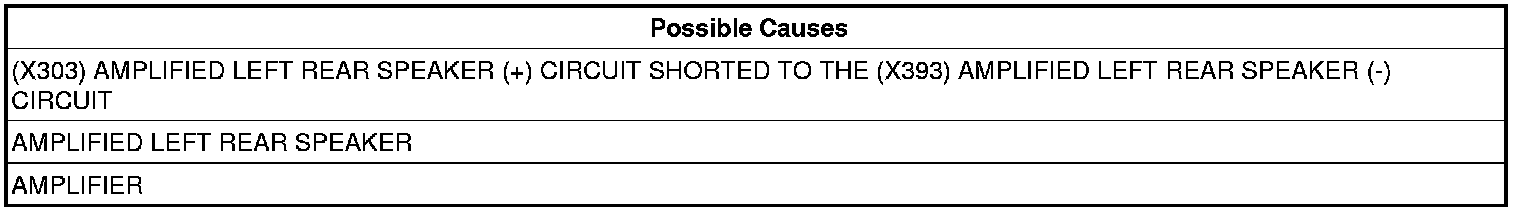 - Repair the (X303) Amplified Left Rear Speaker (+) circuit, and the (X393) Amplified Left Rear Speaker (-) circuit for a short together.