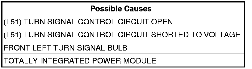 Check for voltage on the (L61) Front Left Turn Signal Control circuit.