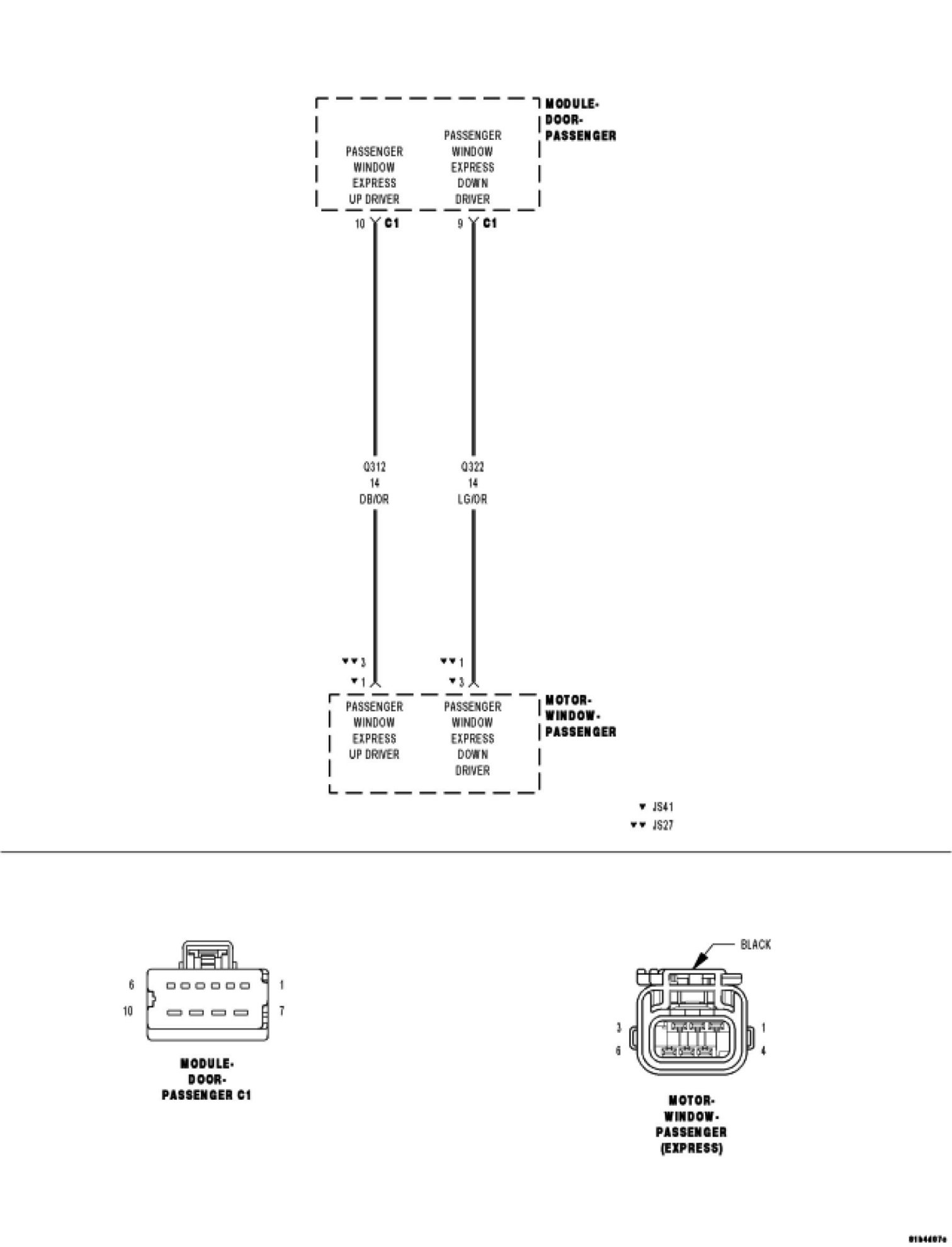 NOTE: Even though the JS27 (Convertible) is not equipped with the Express (AUTO) Up feature, the front window circuits are still referred to as "EXPRESS".