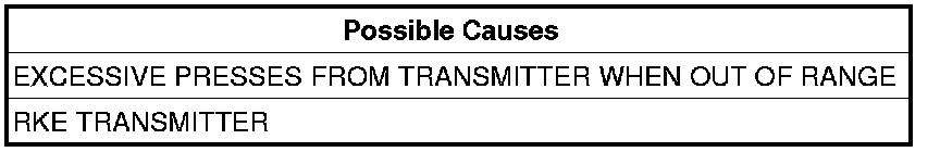NOTE: The most probable cause for this code to set is if the Wireless Control Module (WCM) senses over 150 presses from the RKE transmitter, when it is out of range.
