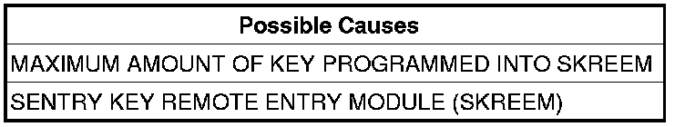 NOTE: If the total number of keys already programmed is equal to Eight and another Key is trying to be programmed, this fault is valid. Explain to the customer no more Keys are allowed to be programmed.
