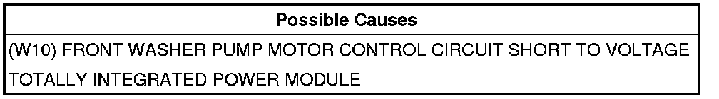 2. (W10) FRONT WASHER PUMP MOTOR CONTROL CIRCUIT SHORT TO VOLTAGE