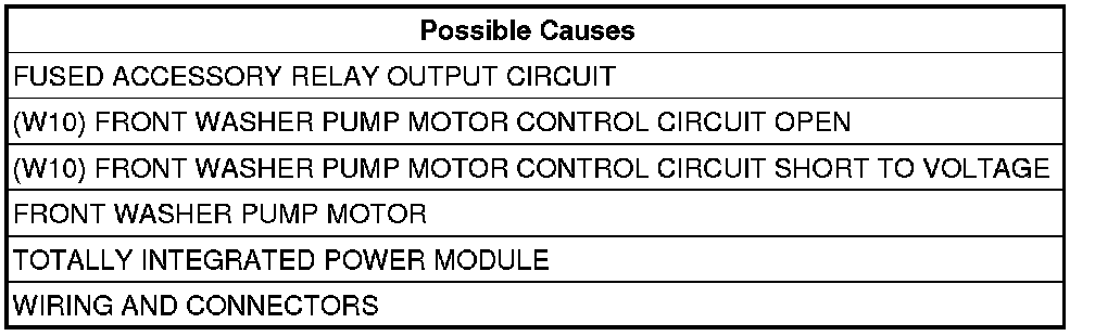 - Repair the (W10) Front Washer Pump Motor Control Circuit for a short to voltage.