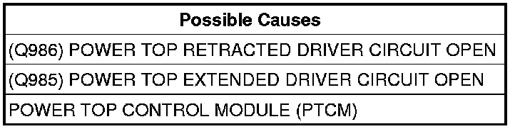 - Repair the (Q986) Power Top Retracted Driver circuit for an open.