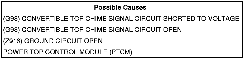- Repair the (G98) Convertible Top Chime Signal circuit for a short to voltage.