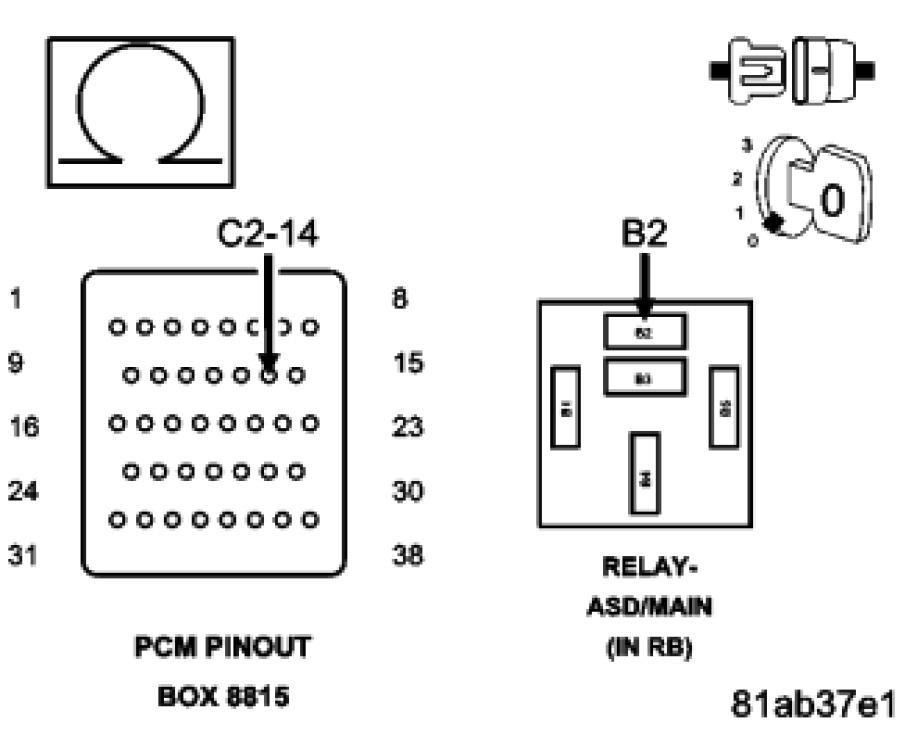 - Repair the (F343) Fused ASD Relay Output circuit for an open circuit or high resistance.