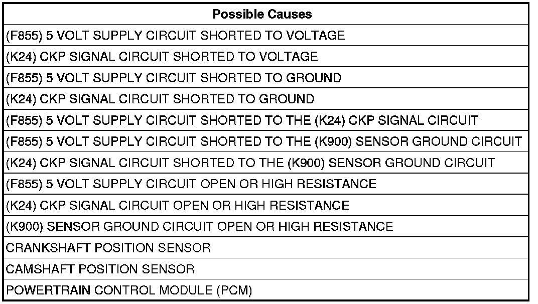 - Repair the short between the (K24) CKP Signal circuit and the (F855) 5-volt Supply circuit.