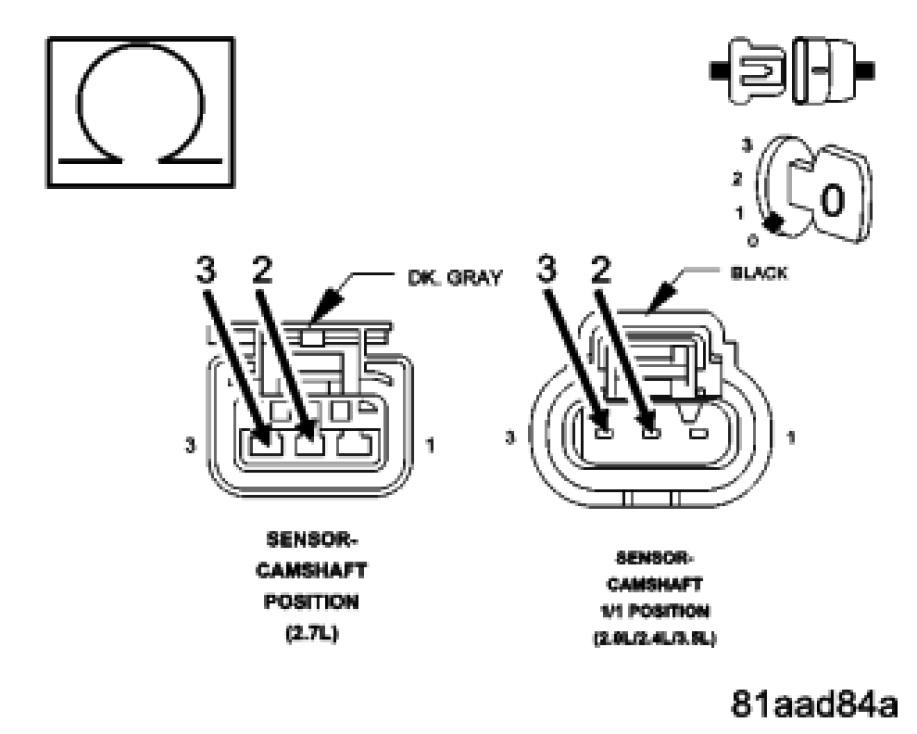 Measure the resistance of the (K900) Sensor Ground circuit between the Camshaft Position Sensor harness connector and the appropriate terminal of special tool #8815.