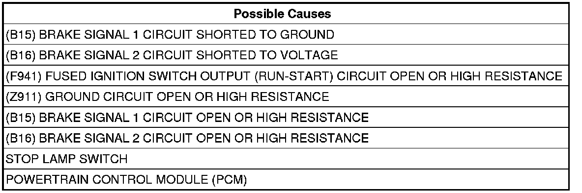 - Repair the short to ground in the (B15) Brake Signal 1 circuit.