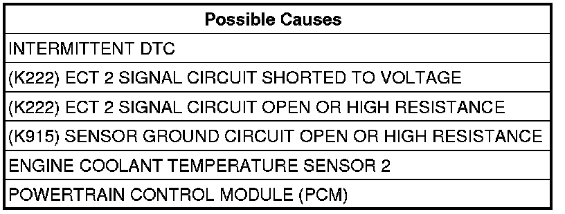 - Repair the (K222) ECT 2 Signal circuit for an open circuit or high resistance.