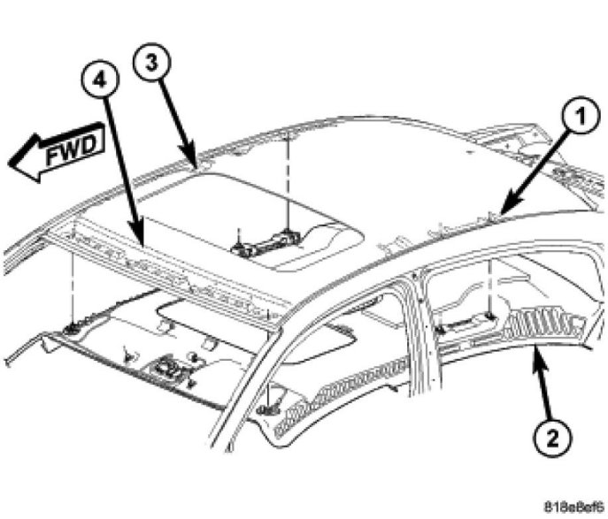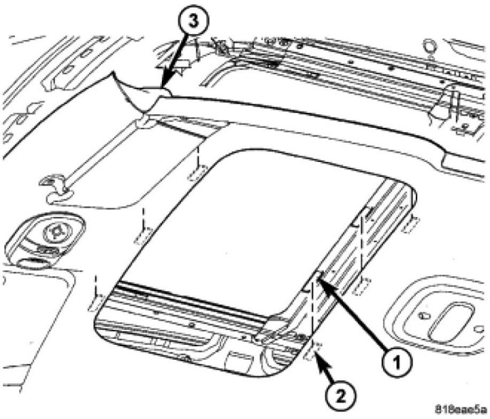 5. If equipped with sunroof, ensure headliner (2) seats to sunroof opening (1).