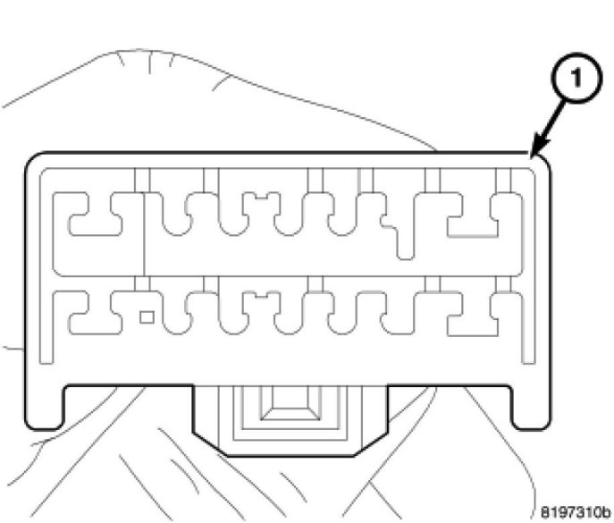 2. Through glove box opening, install terminals into headliner connector (1).