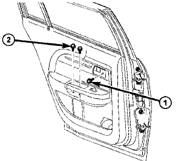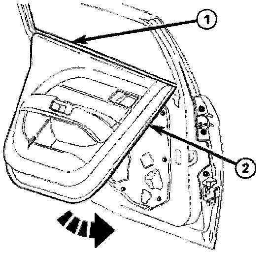 3. Using trim stick C-4755 or equivalent, gently pry upward on door trim panel disengaging trim panel (2) from door run (1).