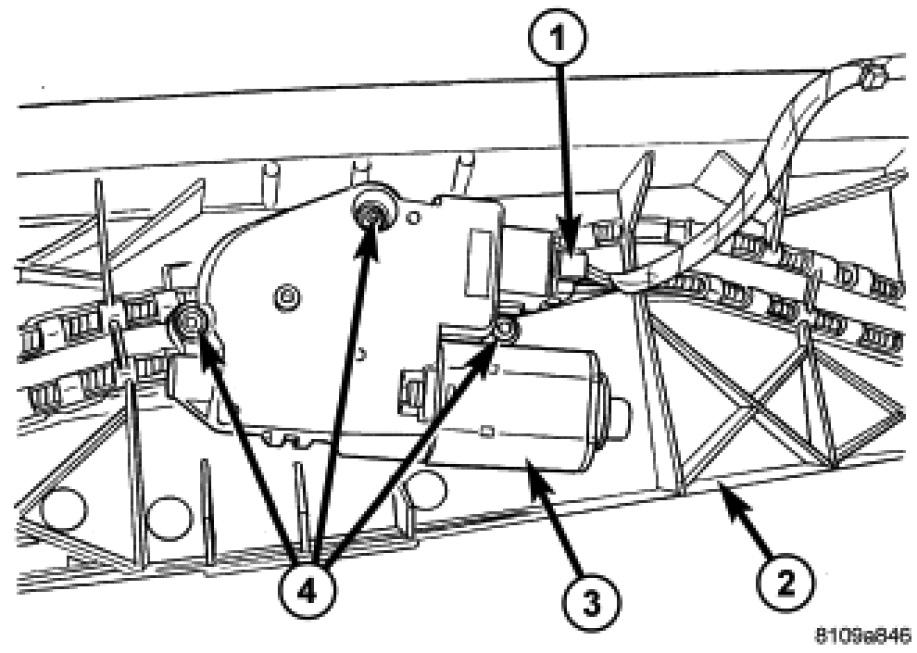 3. Remove three motor assembly attaching screws (4) from bottom side of motor assembly (3) and remove motor assembly from the motor bracket.