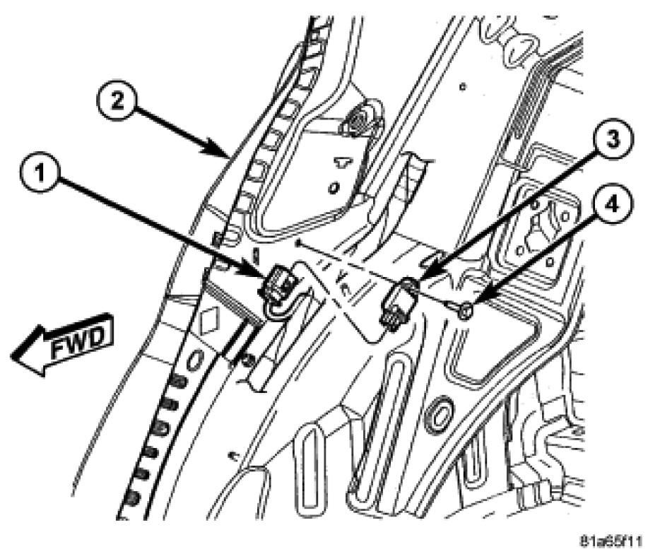 4. Install screw (4) that secures the sensor (3) to the C-pillar (2). Tighten the screw to 8 Nm (71 in. lbs.).