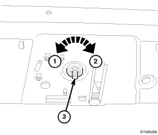 5. Using a 1/4" 8 point socket, rotate the shaft clockwise (2) and unlatch the header latching mechanism (3).