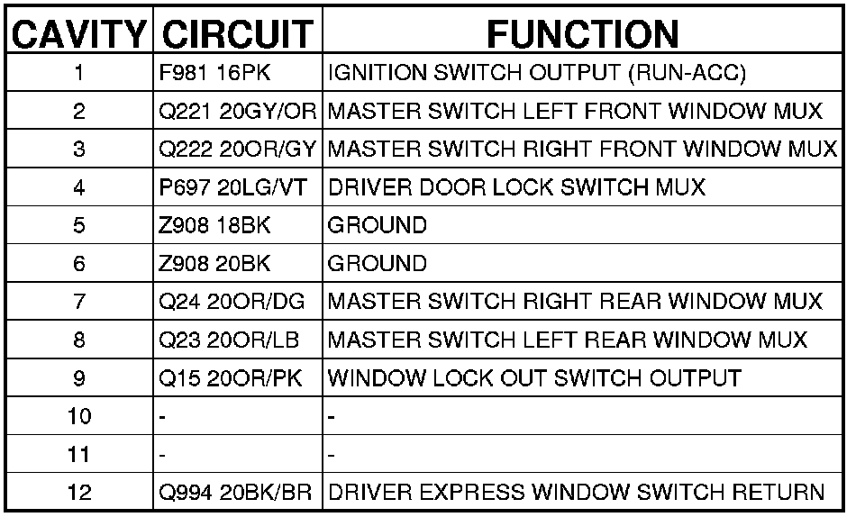 Driver Window/Door Lock Switch (JS27) (Driver Door) 12 Way